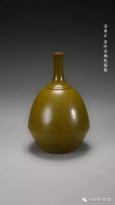 茶葉末釉是一種含結(jié)晶礦物質(zhì)的半無光釉,呈深綠黃色,因釉中均勻地布滿形似茶葉的針、片狀結(jié)晶體而得名,釉面呈失透狀?!短昭拧分姓f"瓷以黃黑相間者,謂之茶葉末。其黑色較濃,而又有黃色碎點(diǎn)于底足內(nèi)外圍繞一遭。瓷致活潑者,則謂之鱔魚發(fā)。以成化仿宋者為上。綠多而無碎點(diǎn)者,厥為蟹甲青。有垂沫星若水眼,或如棧眼者,命曰新桔。其綠色亦較濃也。"在雍正時期的《南窯筆記》中將茶葉末釉稱為"廠官釉"。   廠官釉綬帶耳葫蘆瓶 清乾隆     茶葉末釉六聯(lián)瓶 清乾隆